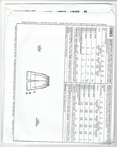 Mccalls Sewing Pattern 5983 Kids Unisex Boxer Shorts Uncut New Size 12 14 Ebay